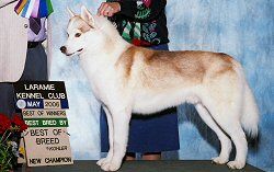 ![]() HIGHLANDER'S GO FOR BROKE ![]() Am/Can CH *Best Puppy in Show - Siberian Husky Club of the Transvaal *Best Puppy in Show - Eastern Districts Kennel Club *Winners Dog, Siberian Husky Club of the Twin Cities Specialty (5 points ~ 1 year) *Best of Winners & Best Bred By, Siberian Hu |
