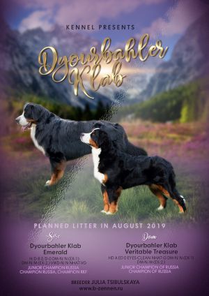 DYOURBAHLER KLAB VERITABLE TREASURE ![]() Junior Champion of Russia, Champion of Russia, BIS puppy, 3* САС. HD А ED 0. eyes-clean. DM-N/N (Ex-1), DM-N/M (Ex-2.) NHAT-G. |