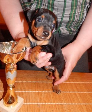 LEEKYUR GROMOBOY GUYAR 2015C.I.B. (INTER Ch), Ch Russia, Montenegro, Macedonia, Bulgaria, Balkan Ch, 3*Ch RKF, J Ch Russia, 7*CACIB, Best Puppy-MinPin in Show Russia-2015 |