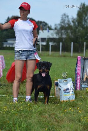 ![]() CHERNIY KUMIR EZHEVIKA ![]() Rus, Ua, Bl CH, Champion of Eurasia, Winner of Russian Rottweiler Club, CACIB, IPO 1. |