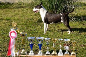 ![]() EMRED DEVILS SPY ![]() UK CHAMPION; 2013 WINNER ORMANDY JUG & CHARLIE GIRL CUP; 2016 WINNER HARRY POTTER GARDENIA PLATE TROPHY; TOP BULLTERRIER JUNIOR-2012; TOP STUD DOG-2016,2017 |