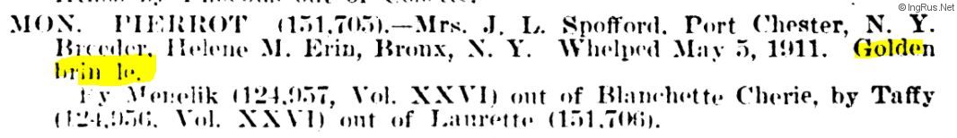 Pedigree of MON. PIERROT 05.05.1911