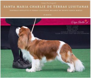 ![]() GAYHALO ROULETTE ![]() Gibraltar Baby Winner 2012; Porto Puppy Winner 2013; Junior Champion Portugal, Spain; Champion Gibraltar, Marroco, Portugal, Spain; C.I.B.; Iberian Champion; Best PT Cavalier 2013 |