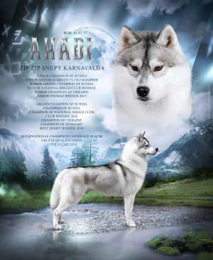 ![]() ZIP ZIP SNUPY KARNAVALDA 2017INTERNATIONAL CHAMPION, 3xBBOB, BIS PUPPY, BOBPuppy, rBIS, 2*JBISS, JUNIOR CLUB WINNER, JUNIOR RUSSIAN CHAMPION, JUNIOR GRAND CHAMPION, JBOB, BOB, JUNIOR FINNISH WINNER 2017, NBC JUNIOR CHAMPION, CLUB WINNER, NBC CHAMPION, RUSSIAN CHAMPION, RUSSIAN G |