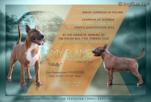 ![]() MY FLAME BARADIEL ![]() Champion of Poland, Champion of Slovakia, Junior Champion of Poland, Junior Poland Winner 2015, Grand Prix Slovakia Winner 2016, Qualifikation for Cruft's 2016, Crufts 2016 #3 Limited Dog, #3 Top Junior in TTB Polish Club Ranking 2015 |