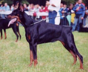 ![]() VIRGINIA BETELGES ![]() Whelped: April, 6th 2000 INTERNATIONAL CHAMPION HUNGARIA CHAMPION YUGOSLAVIA CHAMPION VV1, Junior class and best puppy in show from all classes-Yugoslavian Dobermann Club Nis Championship |