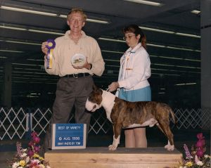![]() BERKSHIRE GLENTOM TABASCO CAT ![]() Am. Ch. ROM, Number 1 colored Bull Terrier in 1998 |