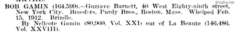 Pedigree of BOB GAMIN 15.02.1912