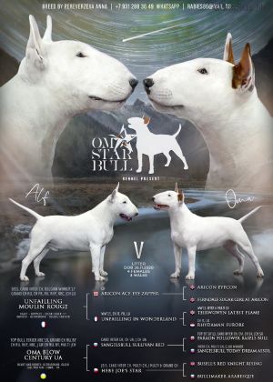 ![]() OMA BLOW CENTURY UA ![]() TOP baby of Russian National Breed Club'18 ,TOP puppy of Russian National Breed Club'18, TOP Junior of Rusian National Breed Club'2019, BEST Bull Terrier of Russian National Breed Club 2019,TOP Female of National Breed Club 2020, CACIB*5, Junior Cha |